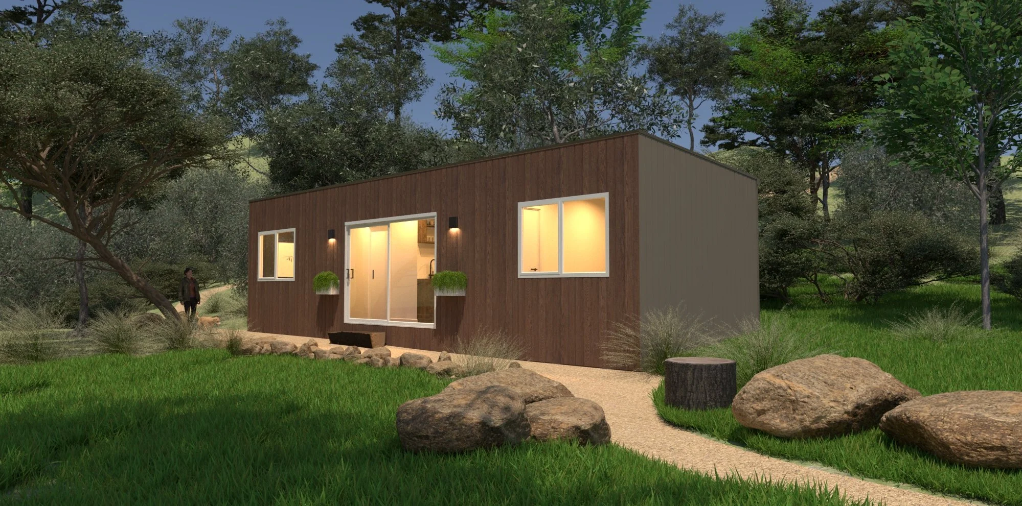 This versatile two-bedroom modular layout offers a fully self-contained living solution ideal for dual occupancy, rental accommodation, extended family living or shared guest stays. Each bedroom features space for a comfortable queen bed, dedicated 1300mm robe, and space for personal items, creating two private and equally functional sleeping zones. The central bathroom includes a 900mm shower, toilet and vanity, while the adjoining laundry nook accommodates a washing machine, linen storage and room for household essentials. Completing the layout is a practical kitchenette with a sink, refrigerator space, and overhead storage, making day-to-day living simple and efficient. Thoughtfully arranged to maximise comfort and privacy, this design delivers a highly flexible modular home with everything needed for independent living in a compact, modern footprint.